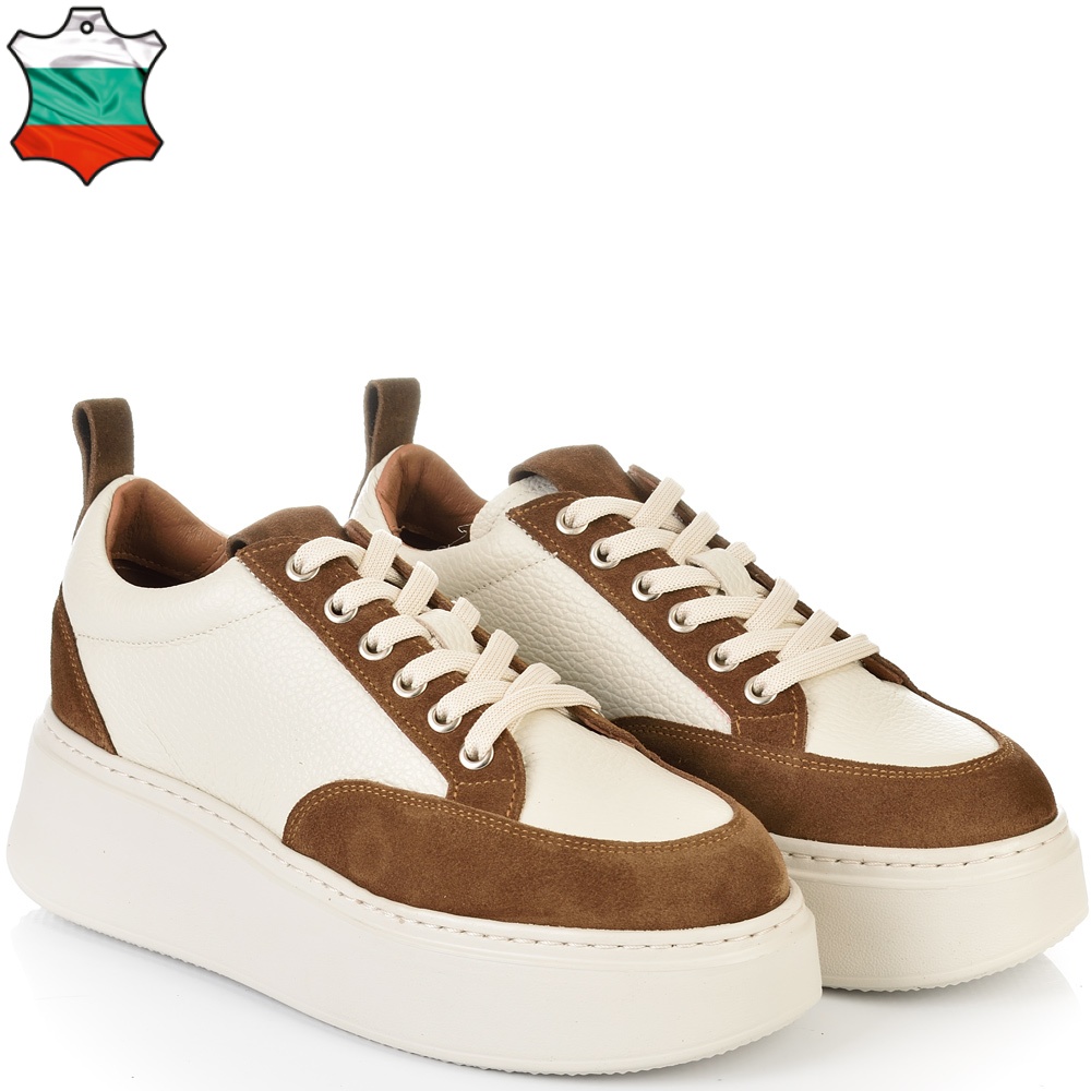 Перфектният избор за сезона! Защо ли? Защото този модел дамски кецове е изработен изцяло от естествена кожа в нежно съчетание на бежова кожа с таба велур с тези кецове ще имате свободата да ги съчетавате с всякакви тоалети. Вътрешната част на модела също е изцяло от естествена кожа, а стелката е Footbed, която е изключително мека и се оформя по стъпалото на принципа на мемори пяна. В допълнение моделът е с олекотено полиуретаново ходило, шито и лепено, което перфектно допълва комфорта на модела и следва естествената линия на движение на краката. С тях ще бъдете просто неотразима.