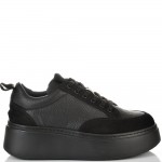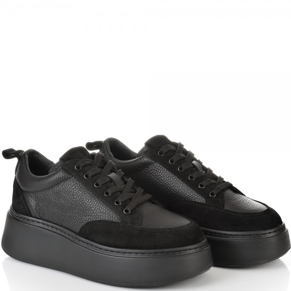 Този модел дамски кецове е изработен изцяло от естествена кожа. В перфектното съчетание на черна кожа шегрен и черен велур с тези кецове ще имате свободата да ги съчетавате с всякакви тоалети. Вътрешната част на модела също е изцяло от естествена кожа, а стелката е Footbed, която е изключително мека и се оформя по стъпалото на принципа на мемори пяна. В допълнение моделът е с олекотено полиуретаново ходило, шито и лепено, което перфектно допълва комфорта на модела и следва естествената линия на движение на краката. С тях ще бъдете просто неотразима.