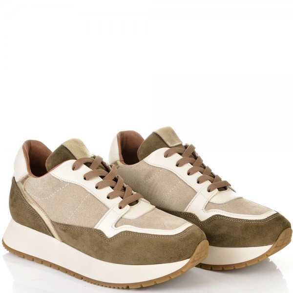 Новото ни предложение на дамски кецове от естествена кожа идва в невероятно съчетание на различни видове кожи в бежово, зелено и златно, които са изключително актуални на сезона. Моделът ще допринесе завършеност и стил във вашата визия. Вътрешната част на модела също е изцяло от естествена кожа, а стелката е Footbed, която е изключително мека и се оформя по стъпалото на принципа на мемори пяна. В допълнение моделът е с олекотено полиуретаново ходило, шито и лепено, което перфектно допълва комфорта на модела и следва естествената линия на движение на краката.