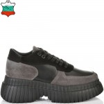ДАМСКИ КЕЦОВЕ ОТ ЕСТЕСТВЕНА КОЖА И ВЕЛУР-D5061-ЧЕРНО/СИВО