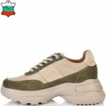 ДАМСКИ КЕЦОВЕ ОТ ЕСТЕСТВЕНА КОЖА И ВЕЛУР-D6065-БЕЖОВО/ЗЕЛЕНО