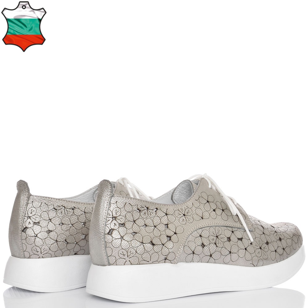 ДАМСКИ ОБУВКИ НА ПЛАТФОРМА ОТ ЕСТЕСТВЕНА КОЖА-19513-1058-СРЕБЪРНИ