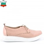 Дамски обувки на лека и стабилна платформа с лазерна перфорация в нежен цвят пудра, изключително удобни. Перфектен избор за ежедневната ти визия, защото лесно се съчетават с всякакви тоалети от дънки и панталони до рокли и поли, също така са подходящи както за пролетта, така и за лятото, заради дупките от перфорацията. Стелката на модела е с три меки зони – пета, свод и възглавничка, а ходилото е изключително леко, защото е изработено от олекотен полиуретан, което перфектно допринася за цялостния комфорт на модела.