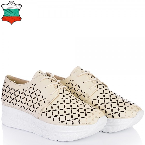Дамски обувки на цялостна платформа с лазерна перфорация в