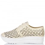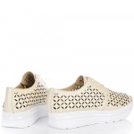 Дамски обувки на цялостна платформа с лазерна перфорация в бежово. Подходящи са както за пролетта така и за лятото, заради самата перфорацията, а и лесно се съчетават с всякакви тоалети от дънки и панталони, до поли и рокли. Стелката на модела е мека, а ходилото е олекотено полиуретаново, което е много стабилно и перфектно допринася за цялостния комфорт на модела.