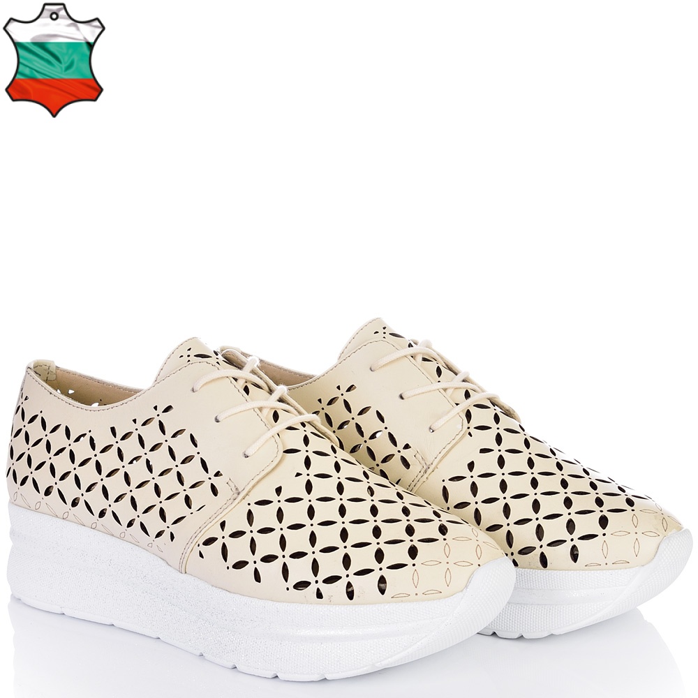 Дамски обувки на цялостна платформа с лазерна перфорация в