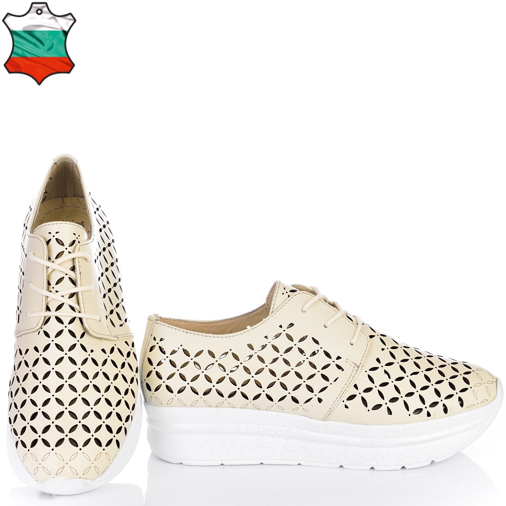Дамски обувки на цялостна платформа с лазерна перфорация в