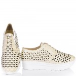 Дамски обувки на цялостна платформа с лазерна перфорация в