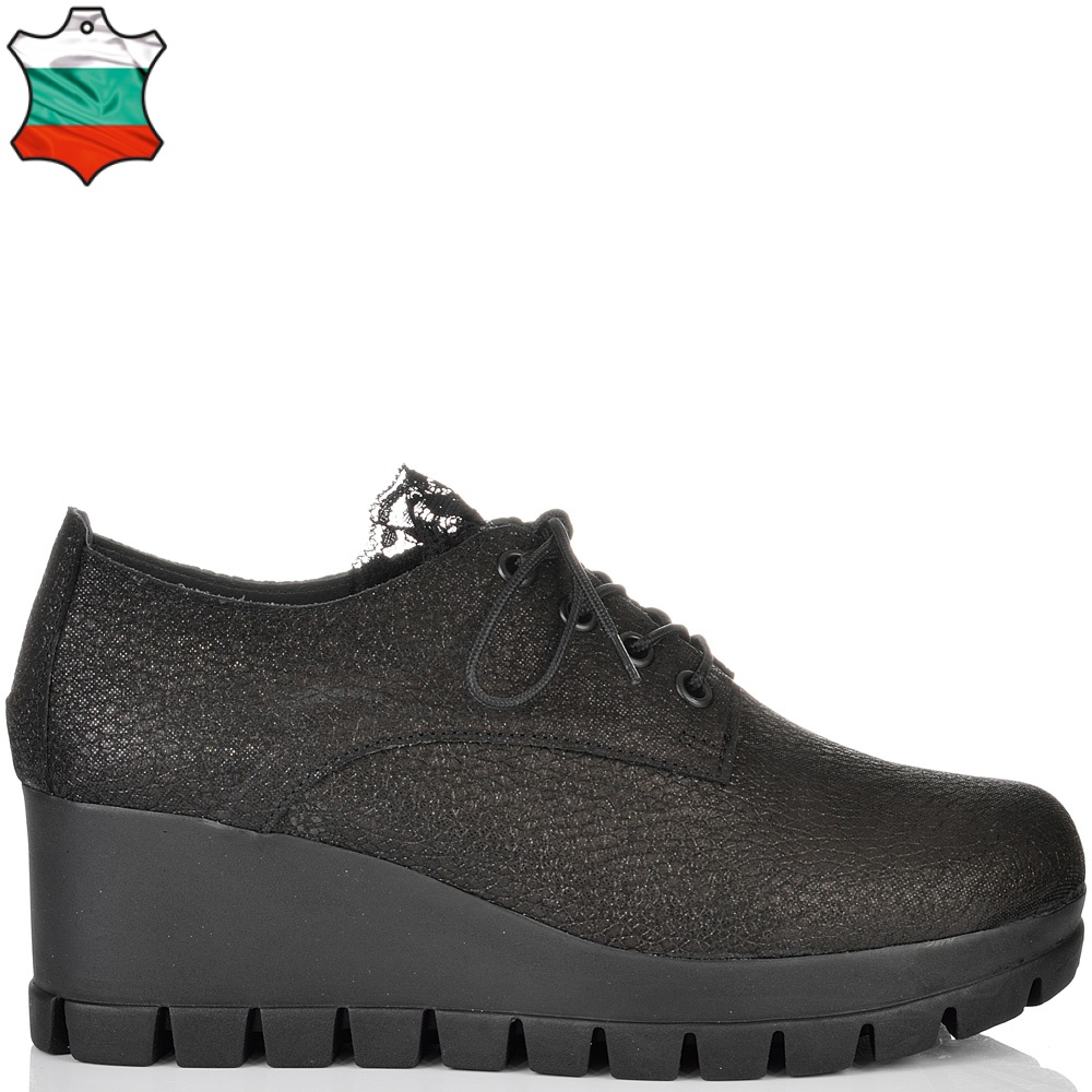 ДАМСКИ ОБУВКИ НА ПЛАТФОРМА ОТ ЕСТЕСТВЕНА КОЖА С ДАНТЕЛА-D3090A-ЧЕРНИ