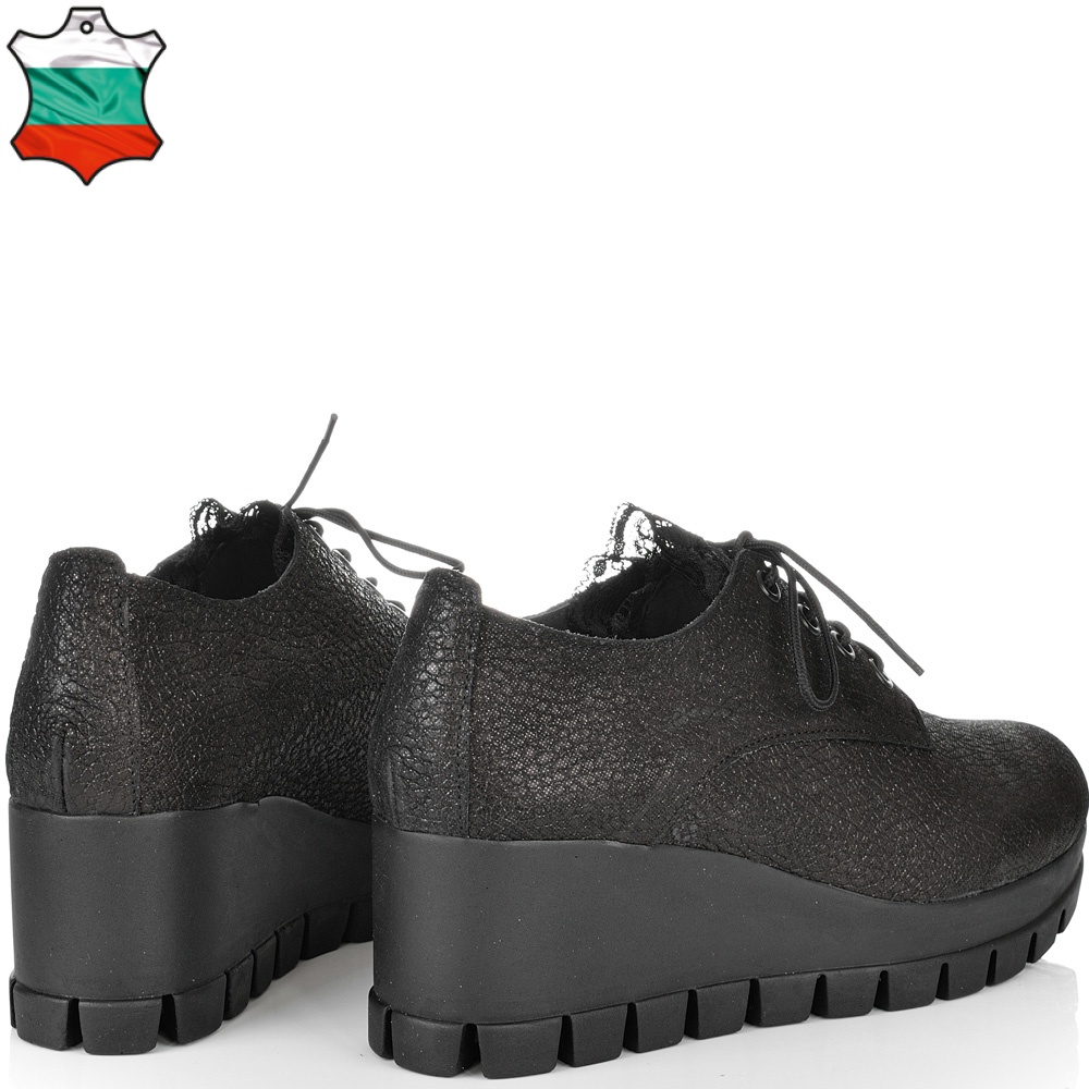 ДАМСКИ ОБУВКИ НА ПЛАТФОРМА ОТ ЕСТЕСТВЕНА КОЖА С ДАНТЕЛА-D3090A-ЧЕРНИ