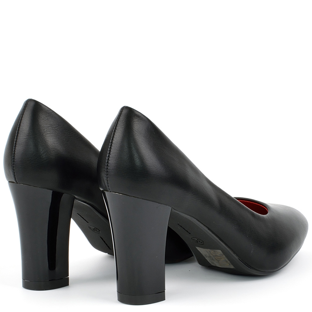 Дамски черни обувки на дебел и стабилен ток, моделът е със средна височина на тока, подходящ както са официални поводи така и за работа и ежедевието. Дебелина на подметката отпред-0,5см, ток-8см. Стелка: №35-23см. Всеки следващ номер е с 0,5см по-голям.