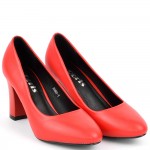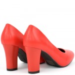 Дамски червени обувки на дебел и стабилен ток, моделът е със средна височина на тока, подходящ както са официални поводи така и за работа и ежедевието. Дебелина на подметката отпред-0,5см, ток-8см. Стелка:№35-23см. Всеки следващ номер е с 0,5см по-голям.