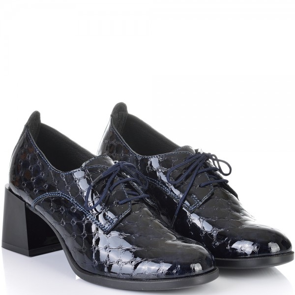 ДАМСКИ ОБУВКИ НА ТОК ОТ ЕСТЕСТВЕН ЕФЕКТЕН ЛАК-JANET2-853-ТЪМНО СИНИ