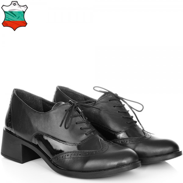 ДАМСКИ ОБУВКИ НА ТОК ОТ ЕСТЕСТВЕНА КОЖА И ЛАК-C362-663-ЧЕРНИ