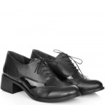 Дамски обувки на ток в черен цвят с нежно съчетание на естествена кожа и естествен лак, страхотен избор, който ще вдъхне стил и елегантност на вашата визия. Стелката на модела е с три меки зони – пета, свод и възглавничка. За такъв тип обувка на ток това е голямо предимство за комфорта на стъпалото, особено в зоната на възглавничката (метатарзалната кост). Тока е изключително стабилен и на височина подходяща за ежедневието, на работа в офиса или за различни официално поводи.