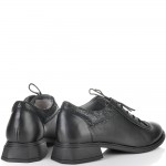 Български дамски черни обувки на нисък и стабилен ток изработени изцяло от естествена кожа. Височината на тока позволява моделът да се носи както в ежедневието така и на работа или за официални поводи