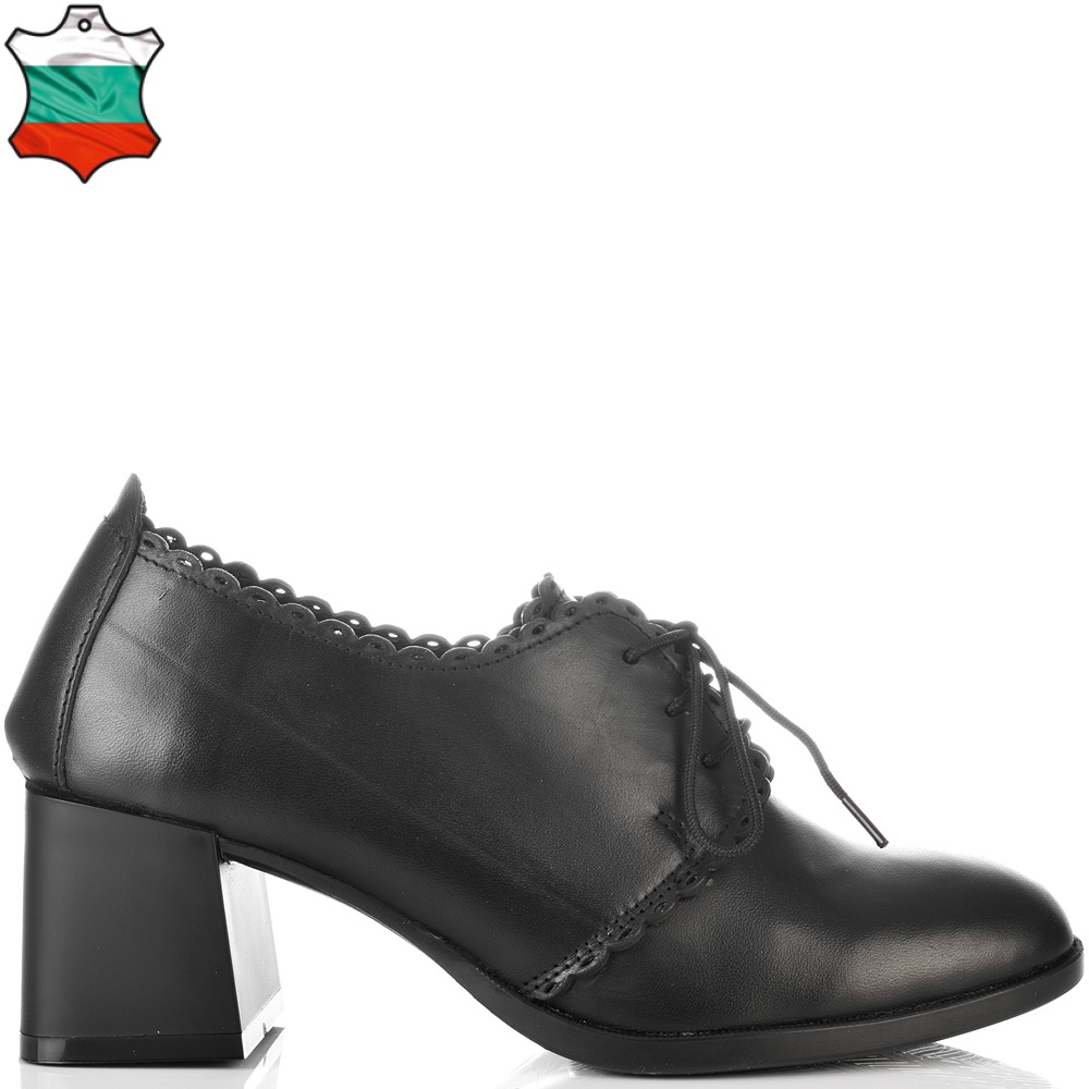 Класиката винаги е на мода. Този модел дамски обувки на дебел ток са изработени от естествена кожа в черен цвят с нежна лазерна обработка. Страхотен избор, който ще вдъхне стил и елегантност на вашата визия. Стелката на модела е с три меки анатомични зони – пета, свод и възглавничка. За такъв тип обувка на ток това е голямо предимство за комфорта на стъпалото, особено в зоната на възглавничката (метатарзалната кост). Тока е изключително стабилен и на височина подходяща за ежедневието, на работа в офиса или за различни официално поводи.