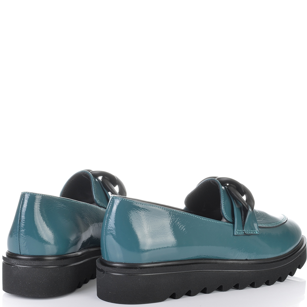 Дамски обувки тип мокасина в страхотен петролен цвят от естествен лак с черна катарама. Топ модел за сезона изключително стилен и удобен, защото стеклата е мека и се оформя по стъпалото на принципа на мемори пяна. Моделът е много лек, тъй като е изработен от олекотено полиуретаново ходило, което следва естествената линия на движение на походката.