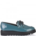 Дамски обувки тип мокасина в страхотен петролен цвят от естествен лак с черна катарама. Топ модел за сезона изключително стилен и удобен, защото стеклата е мека и се оформя по стъпалото на принципа на мемори пяна. Моделът е много лек, тъй като е изработен от олекотено полиуретаново ходило, което следва естествената линия на движение на походката.
