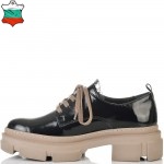 Изключително удобни на спортно-елегантно бежово ходило в черен естествен лак, нашите нови обувки ще Ви накарат да се чувствате прекрасно. Обувките имат нежна черна дантела на езика, а връзките са в бежов цвят, който се съчетава перфектно с цвета на ходилото.Тези обувки са изключително удобни, защото са изработени от полиуретаново ходило, което следва естествената линия на движение на походката. Лесно се съчетават с всякакви тоалети във Вашето ежедневие, от рокли и поли, до панталони и дънки с тях ще сте неотразима, защото комфорта Ви отива.