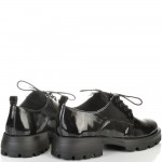 Страхотен модел дамски обувки с връзки на лек ток в ефектна черна кожа. Класически модел за сезона изключително стилен и удобен с тях ще се чувствате неотразима. Лесно се съчетава с всякакави тоалети и е подходящ както за ежедневието така и за официални случаи и поводи. Стелката на модела е с три меки и анатомични зони – пета, свод и възглавничка. Моделът е много лек, защото е изработен от олекотено и гъвкаво ходило, което следва естествената линия на движение на походката.