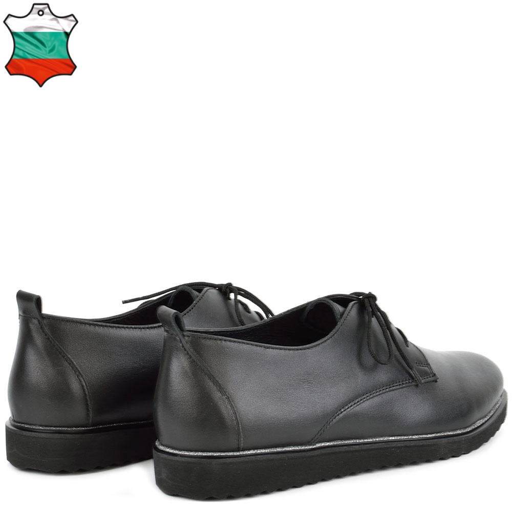 Дамски обувки от естествена кожа във вечно модерния и класически черен цвят. Висококачествената естествена кожа и перфектната изработка, придават стил и елегантност на модела. Тези обувки са подходящи за ежедневието, защото лесно се съчетава с много тоалети от рокли и поли, до дънки и панталони. И накрая, но не на последно място обувките са с мека стелка, а ходилото следва естествената линия и движения на походката.