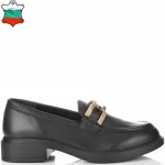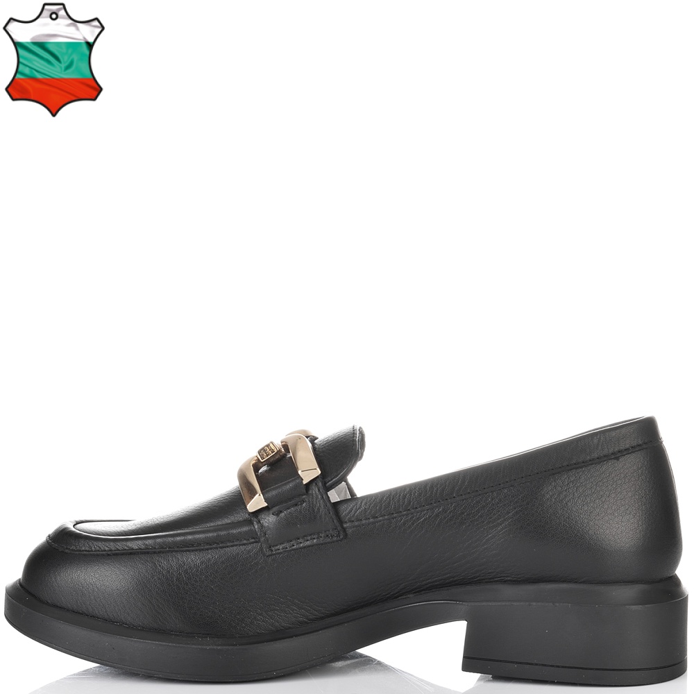 Дамски обувки тип мокасина в черен цвят на черно ходило с метален златен елемент. Моделът е изработен от много мека и качествена естествена кожа, която прилепва и се оформя по крака. Подходящи са както за есента така и за пролетта. Ходилото е много стабилно и перфектно допринася за цялостния комфорт на модела.