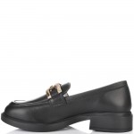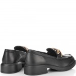 Дамски обувки тип мокасина в черен цвят на черно ходило с метален златен елемент. Моделът е изработен от много мека и качествена естествена кожа, която прилепва и се оформя по крака. Подходящи са както за есента така и за пролетта. Ходилото е много стабилно и перфектно допринася за цялостния комфорт на модела.