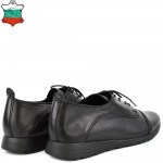 Дамски обувки от естествена кожа в черен цвят. Висококачествената естествена кожа и перфектната изработка, придават стил и елегантност на модела. Тези обувки са подходящи за ежедневието, защото лесно се съчетава с много тоалети от рокли и поли, до дънки и панталони. Ходилото следва естествената линия и движения на походката.