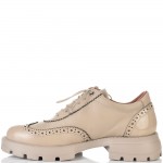 Изключително удобни на спортно-елегантно ходило, нашите нови обувки ще Ви накарат да се чувствате прекрасно. Този страхотен модел е изработен от бежова естествен кожа и естествен лак, като за перфектната визия на модела допринася и лазерната обработка. Тези обувки са изключително удобни и леки, защото са изработени от олекотено полиуретаново ходило, което следва естествената линия на движение на походката. Лесно се съчетават с всякакви тоалети във Вашето ежедневие, от рокли и поли, до панталони и дънки с тях ще сте неотразима, защото комфорта Ви отива.
