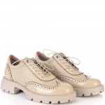 Изключително удобни на спортно-елегантно ходило, нашите нови обувки ще Ви накарат да се чувствате прекрасно. Този страхотен модел е изработен от бежова естествен кожа и естествен лак, като за перфектната визия на модела допринася и лазерната обработка. Тези обувки са изключително удобни и леки, защото са изработени от олекотено полиуретаново ходило, което следва естествената линия на движение на походката. Лесно се съчетават с всякакви тоалети във Вашето ежедневие, от рокли и поли, до панталони и дънки с тях ще сте неотразима, защото комфорта Ви отива.