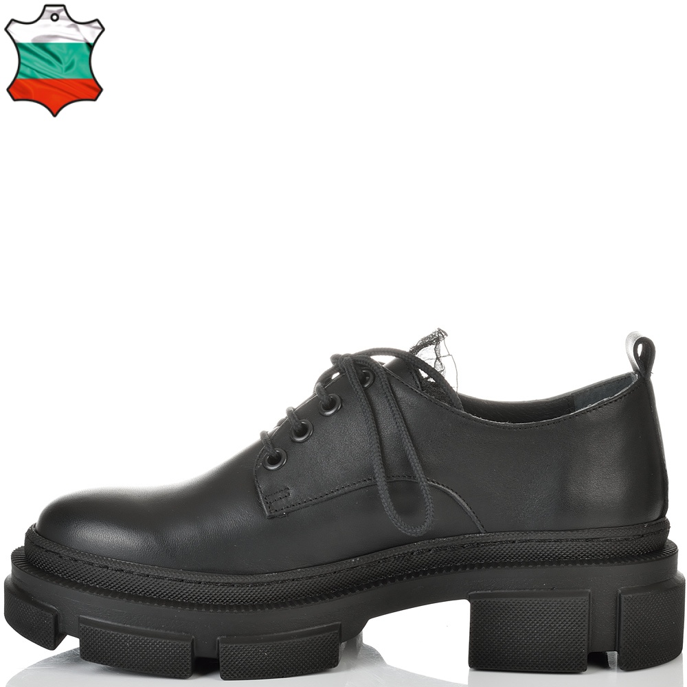 Изключително удобни на спортно-елегантно ходило в черна естествена кожа, нашите нови обувки ще Ви накарат да се чувствате прекрасно. Обувките имат нежна черна дантела на езика, която придава много стил. Тези обувки са изключително удобни, защото са изработени от полиуретаново ходило, което следва естествената линия на движение на походката. Лесно се съчетават с всякакви тоалети във Вашето ежедневие, от рокли и поли, до панталони и дънки с тях ще сте неотразима, защото комфорта Ви отива.