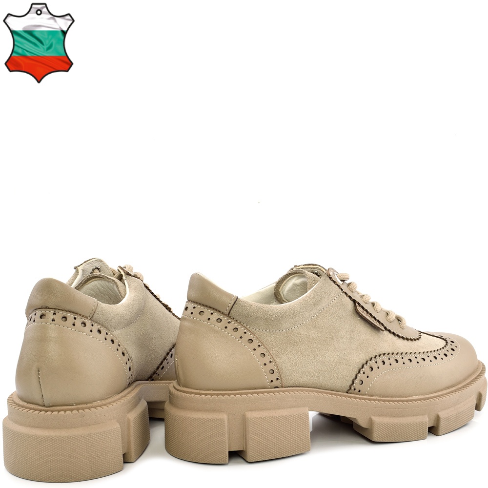 ДАМСКИ ОБУВКИ ОТ ЕСТЕСТВЕНА КОЖА С ВЕЛУР-6060-БЕЖОВИ