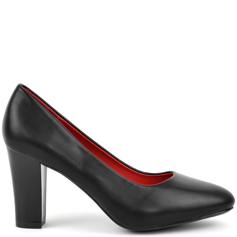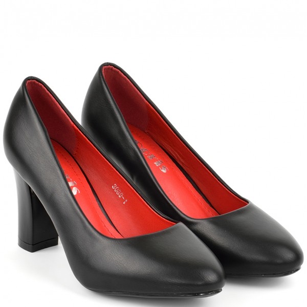 Дамски черни обувки на дебел и стабилен ток, моделът е със средна височина на тока, подходящ както са официални поводи така и за работа и ежедевието. Дебелина на подметката отпред-0,5см, ток-8см. Стелка: №35-23см. Всеки следващ номер е с 0,5см по-голям.