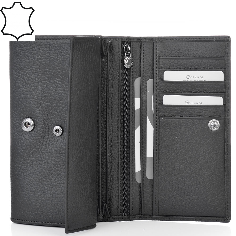 ДАМСКО ПОРТМОНЕ GRANDE ОТ ЕСТЕСТВЕНА КОЖА-2604-ЧЕРНО