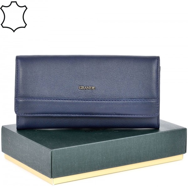 ДАМСКО ПОРТМОНЕ GRANDE ОТ ЕСТЕСТВЕНА КОЖА-2615-ТЪМНО СИНЬО