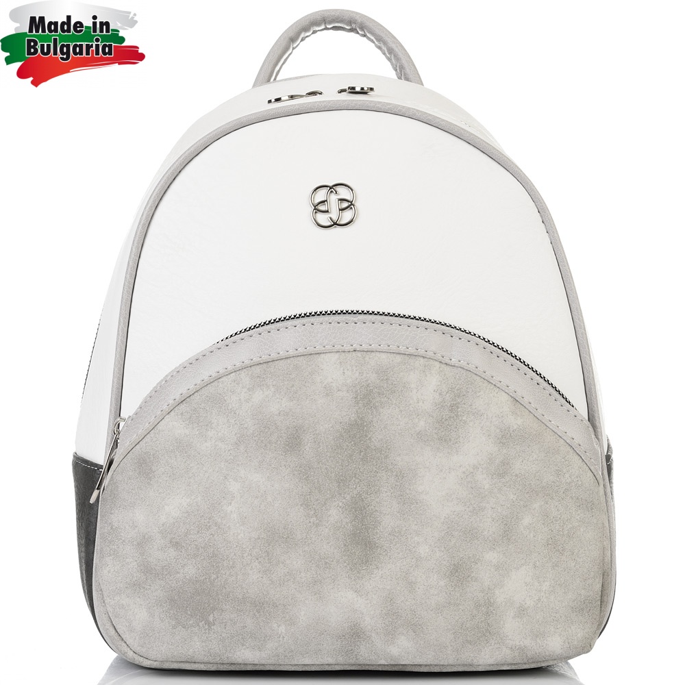 БЪЛГАРСКА ДАМСКА РАНИЦА-S1316-СИВО/БЯЛО