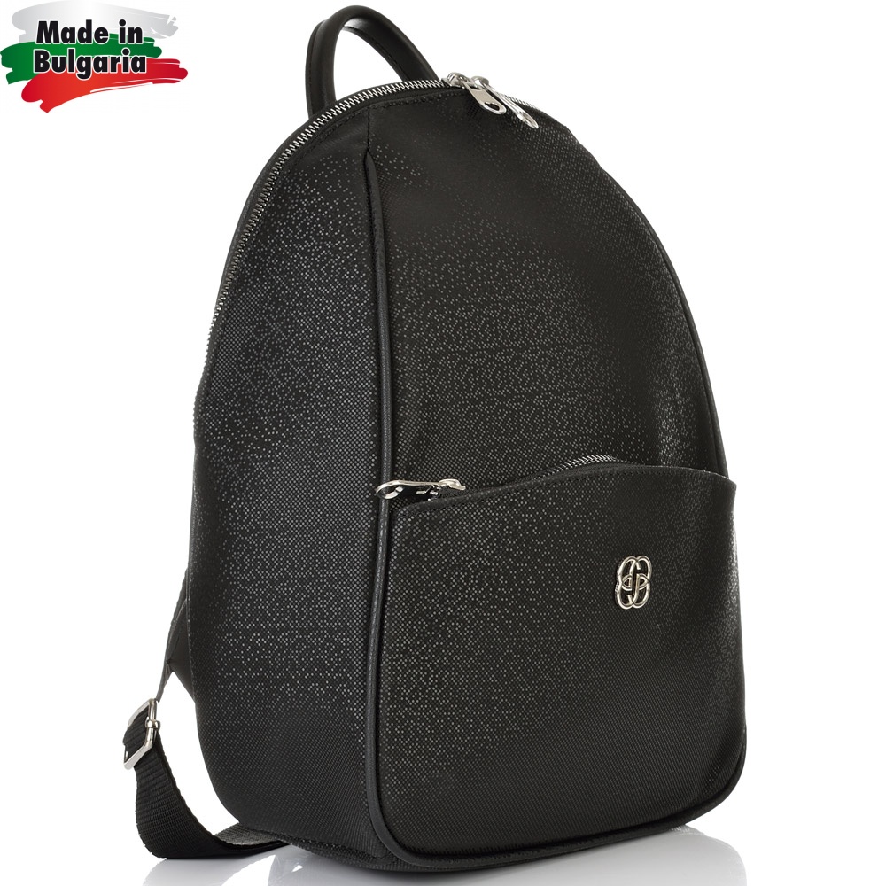БЪЛГАРСКА ДАМСКА РАНИЦА-S1323-ЕФЕКТНА КОЖА-ЧЕРНА