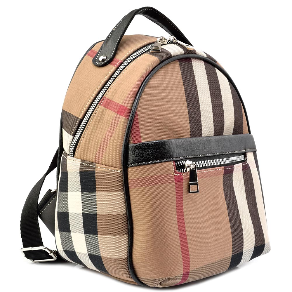 БЪЛГАРСКА ДАМСКА РАНИЦА-S1334-КАРЕ-ЧЕРНО/БЕЖОВО