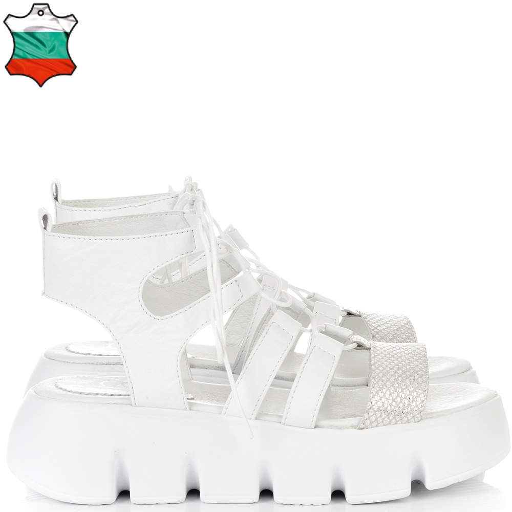 ДАМСКИ САНДАЛИ НА ПЛАТФОРМА ОТ ЕСТЕСТВЕНА КОЖА-22253-1464-БЕЛИ