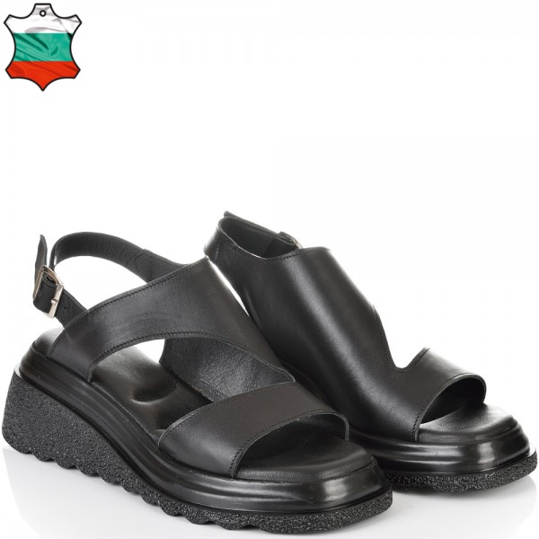 ДАМСКИ САНДАЛИ НА ПЛАТФОРМА ОТ ЕСТЕСТВЕНА КОЖА-5095-ЧЕРНИ