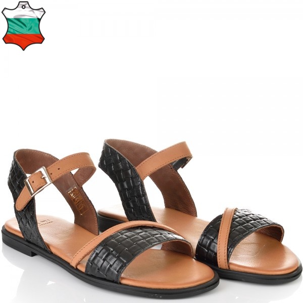 ДАМСКИ САНДАЛИ НА РАВНО ХОДИЛО ОТ ЕФЕКТНА ЕСТЕСТВЕНА КОЖА-TERESA 09-ЧЕРНИ
