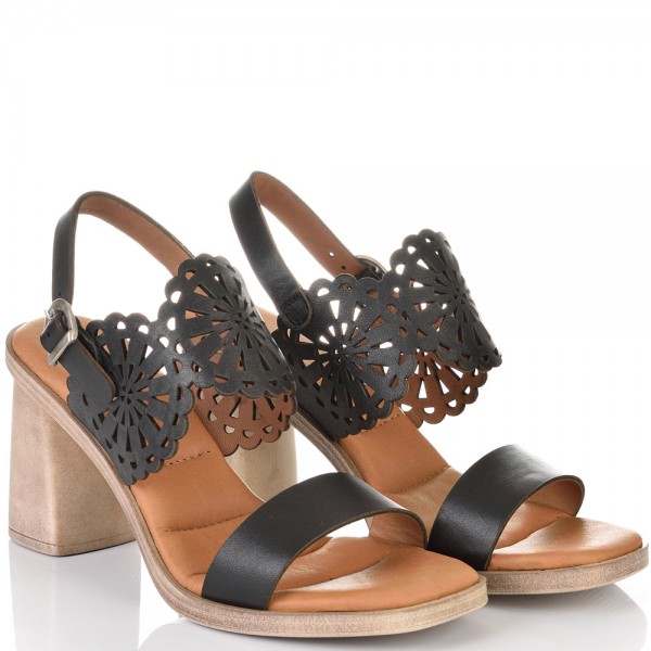 ДАМСКИ САНДАЛИ НА ТОК ОТ ЕСТЕСТВЕНА КОЖА-D3043-ЧЕРНИ