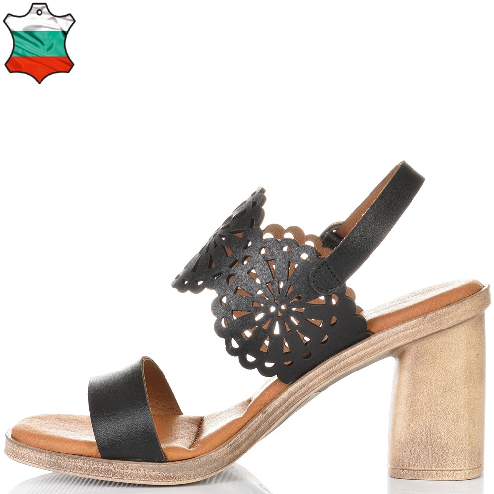 ДАМСКИ САНДАЛИ НА ТОК ОТ ЕСТЕСТВЕНА КОЖА-D3043-ЧЕРНИ
