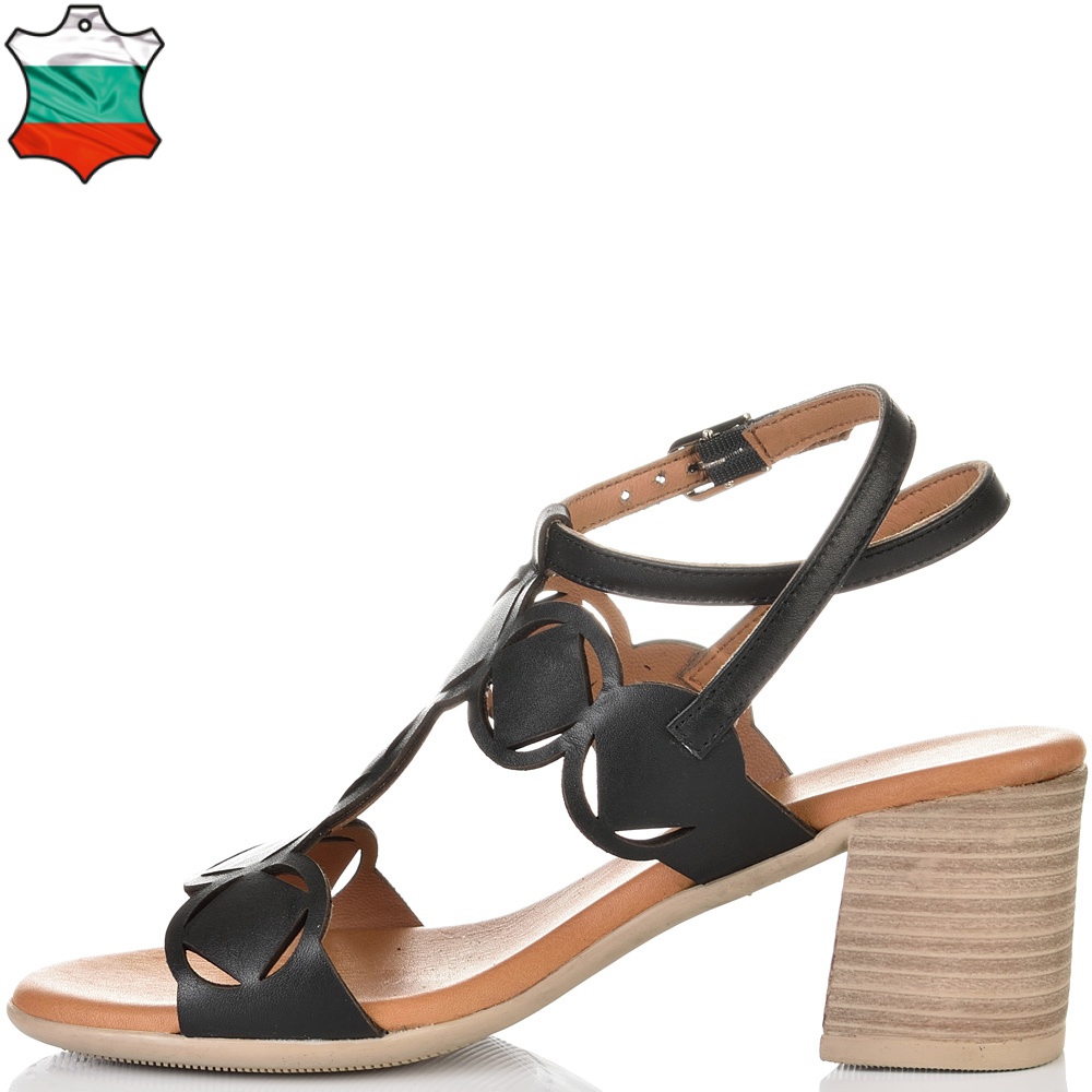 ДАМСКИ САНДАЛИ НА ТОК ОТ ЕСТЕСТВЕНА КОЖА-D4019-ЧЕРНИ