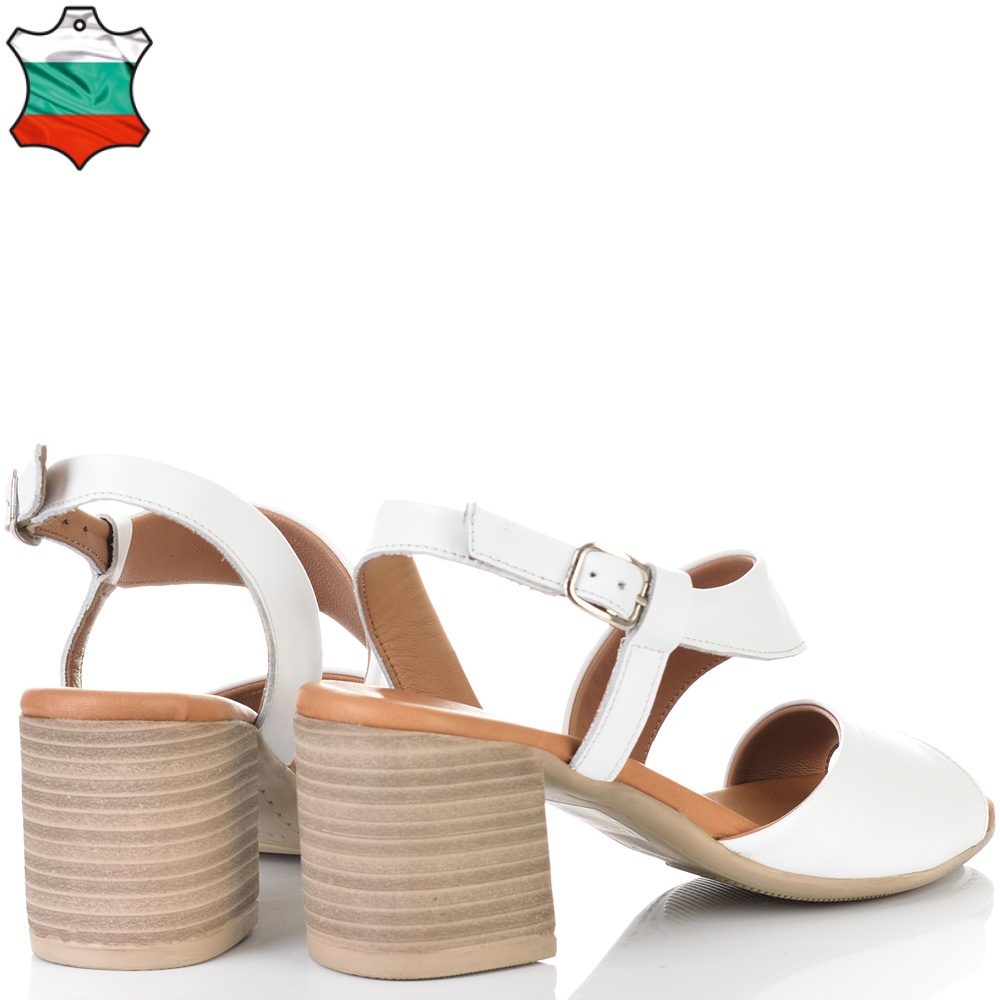 ДАМСКИ САНДАЛИ НА ТОК ОТ ЕСТЕСТВЕНА КОЖА-D5006-БЕЛИ
