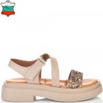 ДАМСКИ САНДАЛИ ОТ ЕСТЕСТВЕНА КОЖА И БРОКАТ-6008A-БЕЖОВИ