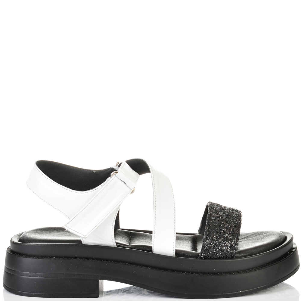 ДАМСКИ САНДАЛИ ОТ ЕСТЕСТВЕНА КОЖА И БРОКАТ-6008A-ЧЕРНО/БЯЛО