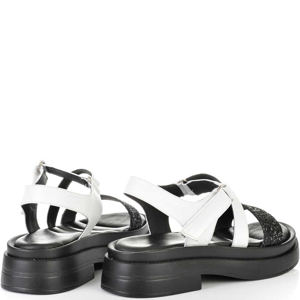 ДАМСКИ САНДАЛИ ОТ ЕСТЕСТВЕНА КОЖА И БРОКАТ-6008A-ЧЕРНО/БЯЛО