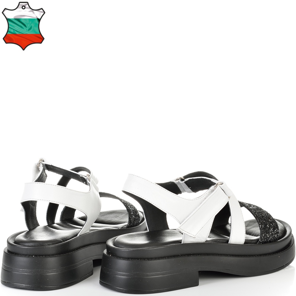 ДАМСКИ САНДАЛИ ОТ ЕСТЕСТВЕНА КОЖА И БРОКАТ-6008A-ЧЕРНО/БЯЛО